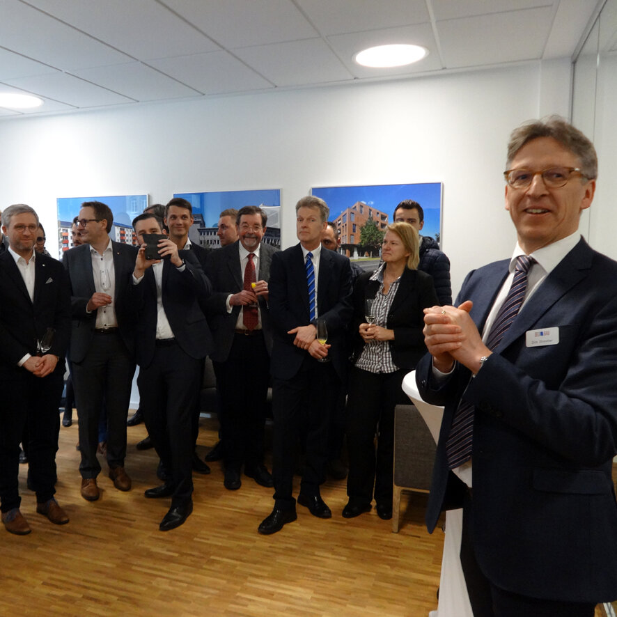 Göttingen. Die Delta Immobilien Gruppe hat am 5. April 2018 ihr neues Standortbüro in Göttingen am Robert-Gernhardt-Platz eröffnet. Grußworte an die geladenen Gäste sprachen neben Dirk Streicher, Geschäftsführer der Delta Fonds, und Büroleiter Richard H. Schulz außerdem der Göttinger Stadtbaurat Thomas Dienberg und Dr. Martin Rudolph, Leiter der IHK-Geschäftsstelle Göttingen. Auch der ehemalige Göttinger Oberbürgermeister Wolfgang Meyer war unter den Gästen, in dessen Amtszeit das Quartier am Leinebogen, in dem sich das neue Büro befindet, entwickelt wurde.